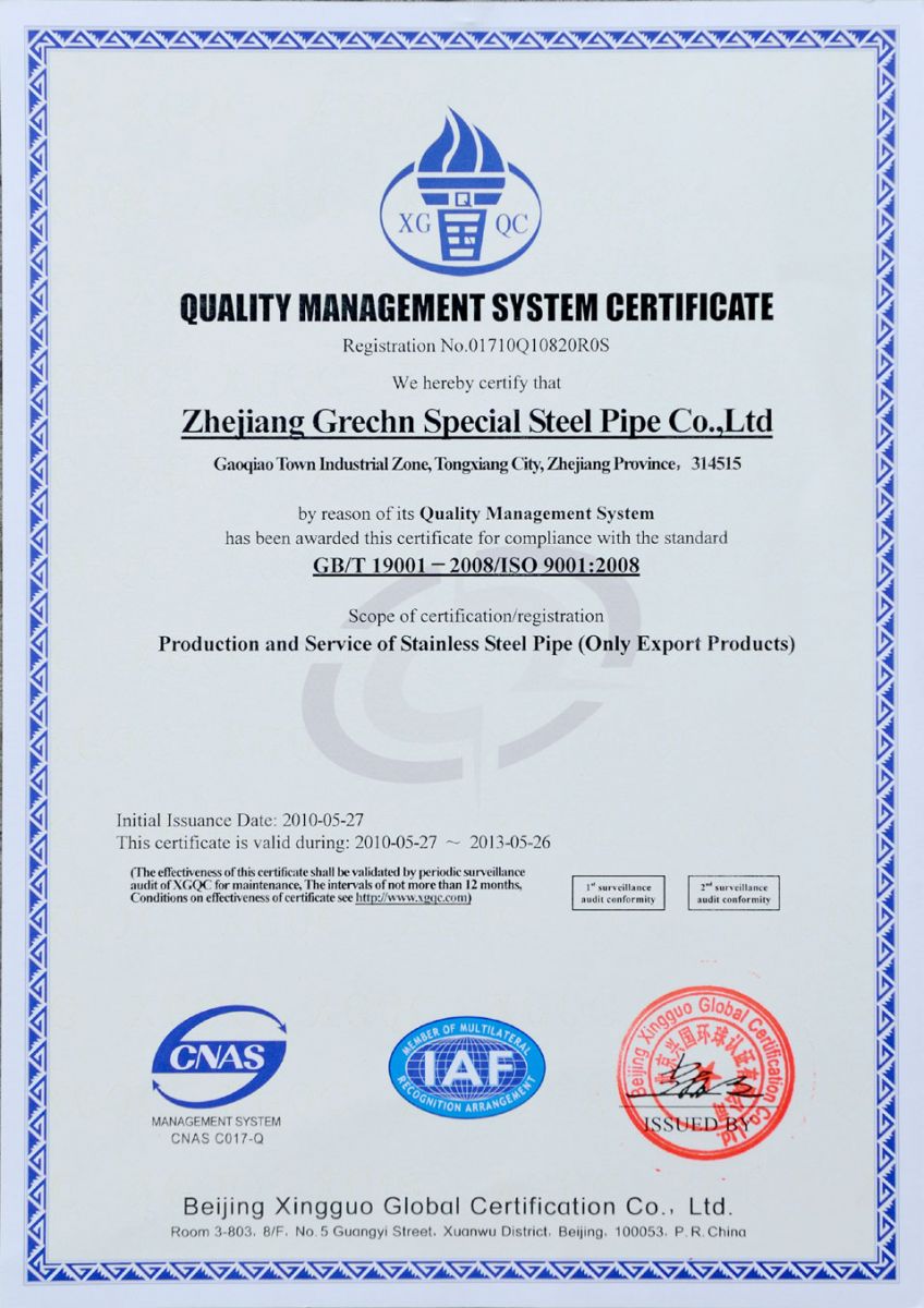 ![]() 質(zhì)量管理體系認(rèn)證證書(shū) |